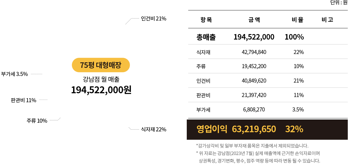 식자재 원가가 경쟁사 대비 낮은 편에 속합니다.