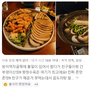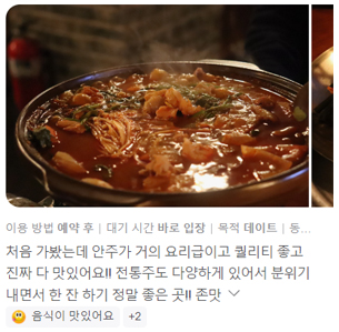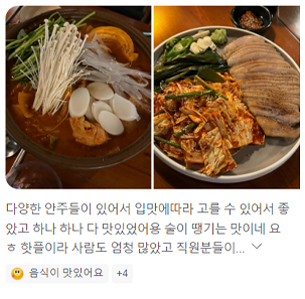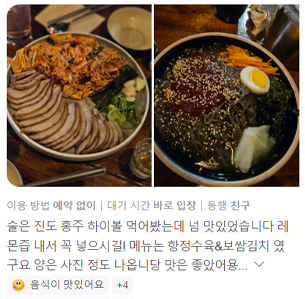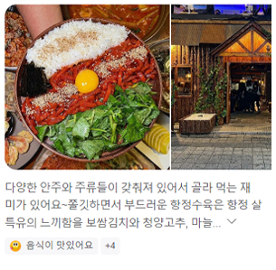 맛으로 소문난 높은 품질의 한식 안주임에도