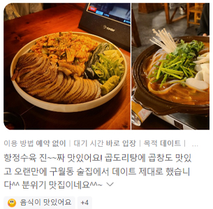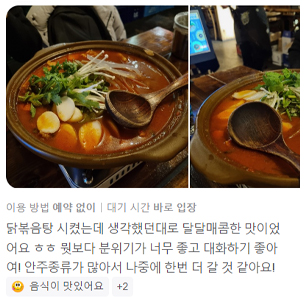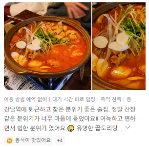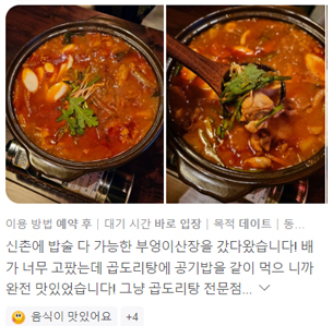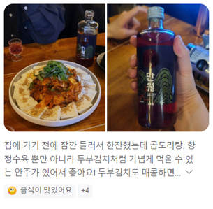 따뜻하게 즐기는 곱도리탕과 소주 한 잔.