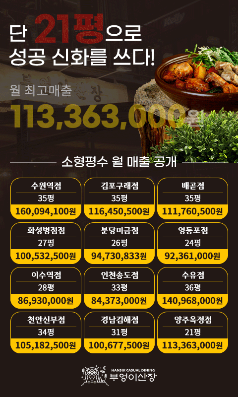 부엉이산장은 성공이 검증된 브랜드입니다.